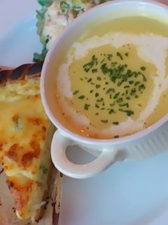 写真は、先日のアトリエパドクワ スペシャルワンデイカフェで食べたキッシュ&コーンポタージュ。