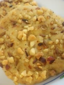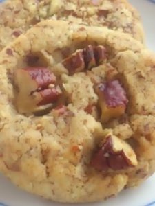 イタリアの無農薬古代小麦粉の全粒粉を加えて、有機栽培ピーカンナッツをのせてこんがり焼き上げました
