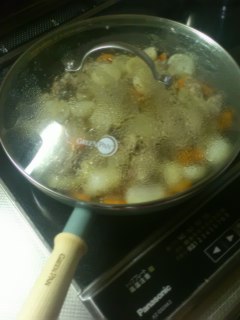 ←煮込んでる様子。ガラケーの限界を感じました・・・(写真のセンスのなさをガラケーのせいにしてみた)