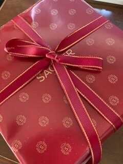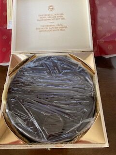 高級感溢れる木箱に入ったホールタイプのザッハトルテをみて思わず歓声を上げて喜び