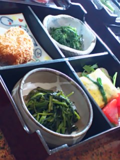 前菜2品、お膳2段に、雑穀入りのおこわと自家製お味噌のお味噌汁。コーヒーと自家製ケーキまでついて2100円!