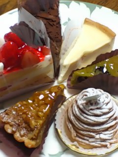 我が家でケーキを買うときは、ホールではつまらないのでいろんなケーキをピースで買ってきます