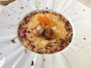 お皿に散らしてあるのはバラの花。ほのかにバラの香りが添えられています